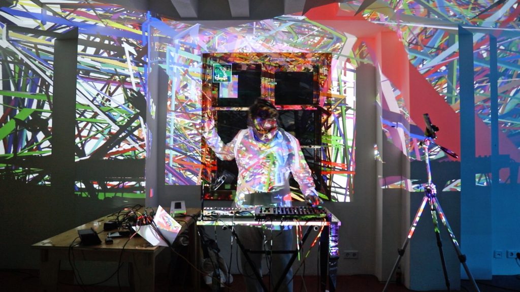 Jan Arlt spielt ein tanzbares Techno-Liveset. Das Set wird in Echtzeit komponiert und produziert. Sounds und Patterns werden an Drumcomputer und Synthesizer from Scratch live eingespielt, generiert, geloopt, gestaltet und arrangiert.